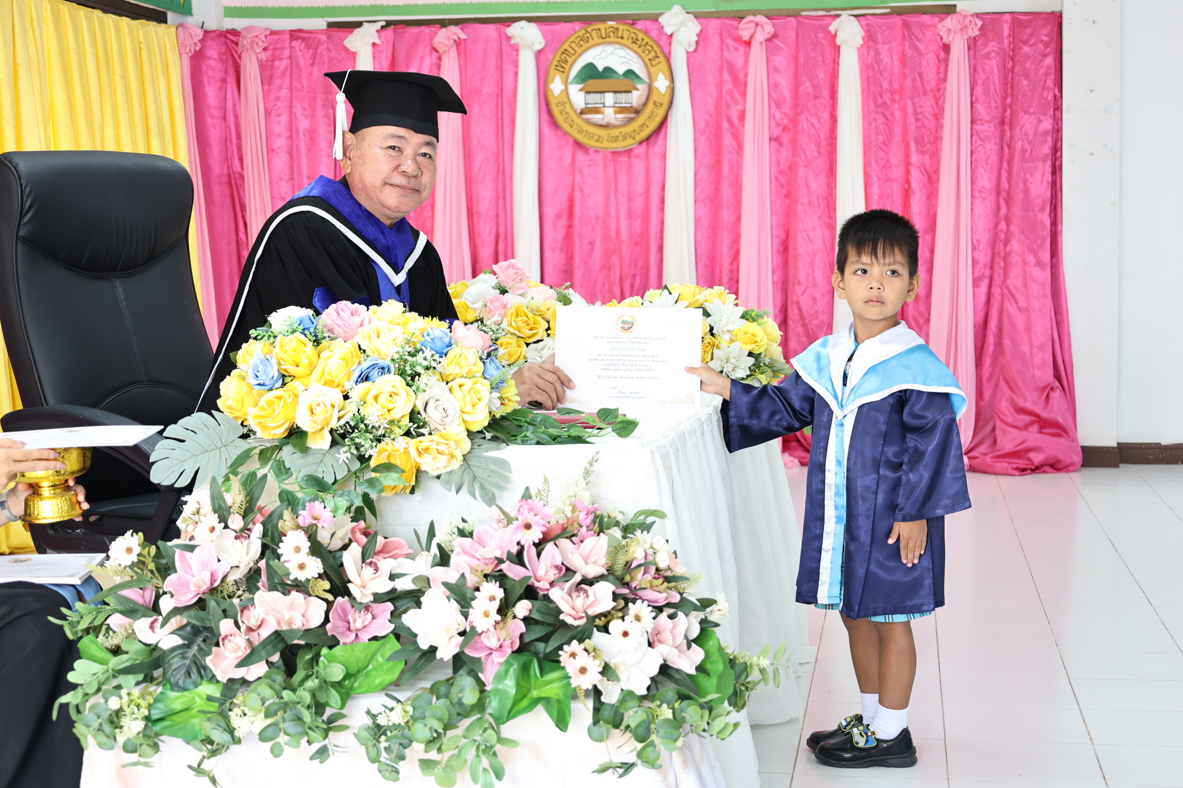 กองการศึกษาศาสนาและวัฒนธรรม นำโดย ร.ต.อ. ไพทูล ภาษาพรม นายกเทศมนตรีตำบลนาจะหลวย พร้อมบุคลากรในสังกัด จัดพิธีมอบวุฒิบัตรบัณฑิตน้อย ประจำปีการศึกษา 2568 วันที่ 27 มีนาคม 2569 ณ ศูนย์พัฒนาเด็กเล็กเทศบาลตำบลนาจะหลวย